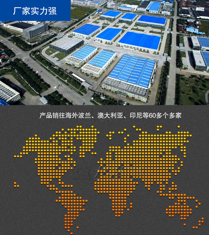 大汉厂家建厂已有15年,积累了丰富的生产经验,,构成了完整的设计、加工制造及售后服务的综合能力,拥有300余台中,小型加工,焊接及组装设备,产品远销美国、俄罗斯、马来西亚、印度、澳大利亚等40多个国家和地区。