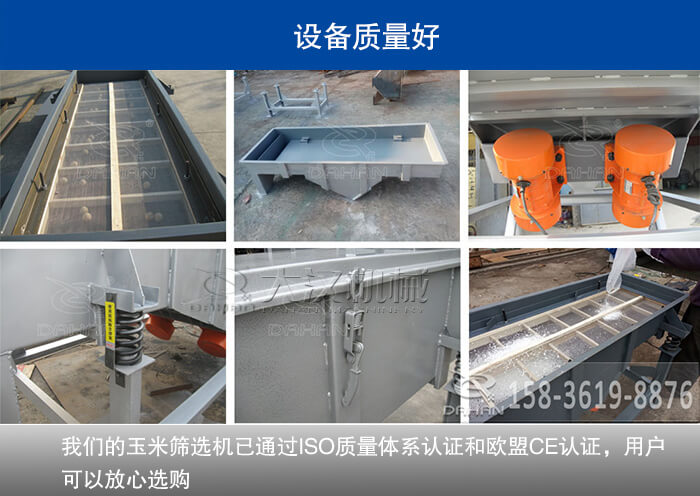 在玉米筛选机选材开始,到设备送到用户手中为止,我们将高品质渗透在每一个细节内,一直致力于把好的设备和好的施工工艺介绍给用户,保证用户利益大化,我们的玉米筛选机选用厚度在10-12mm之间的板材,设备生产过程中优严格的质量管理,能够极大地提高设备的品质,稳定设备的性能,目前,我们的玉米筛选机已通过ISO质量体系认证和欧盟CE认证,用户可以放心选购。
