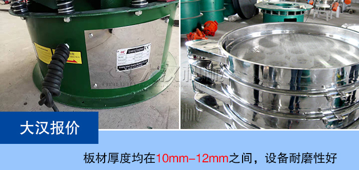 大汉厂家生产的双层旋振筛采用优质碳钢或不锈钢材质,板材厚度均在10mm-12mm之间,设备耐磨性好,使用过程中不会因设备质量问题而造成设备停机问题,可以在很大程度上降低设备的维护费用。