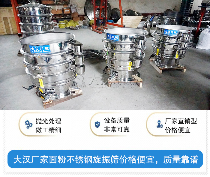 生产面粉不锈钢旋振筛的厂家有很多,不同厂家对于设备价格是不同的,所以这里还是以本公司——大汉机械为例,大汉一台面粉不锈钢旋振筛价格在4000元——45000元之间。