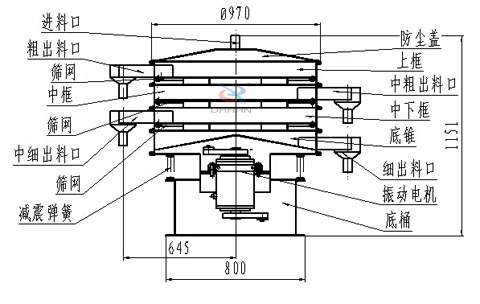 1000型三层不锈钢旋振筛结构图: