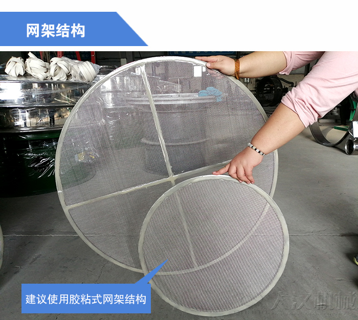 旋振筛设备常见的网架结构有老松式网架、子母网、胶粘网架三种,而就浆液物料的生产来说使用老松式网架或子母网生产时由于筛面承受的激振力过强,所以当浆液进入筛面在强大的激振力作用下就会跳起引起跳浆问题。对于是网架结构的问题建议使用胶粘式网架结构。该结构筛网可以筛面运行轨迹柔和浆液物料进入筛面不会引起浆液的跳动从而解决跳浆问题。