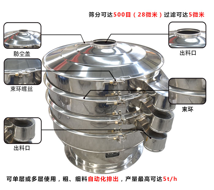 浆液旋振筛是专门针对液体过滤的设备,大汉浆液旋振筛可以过滤5微米的浆液...